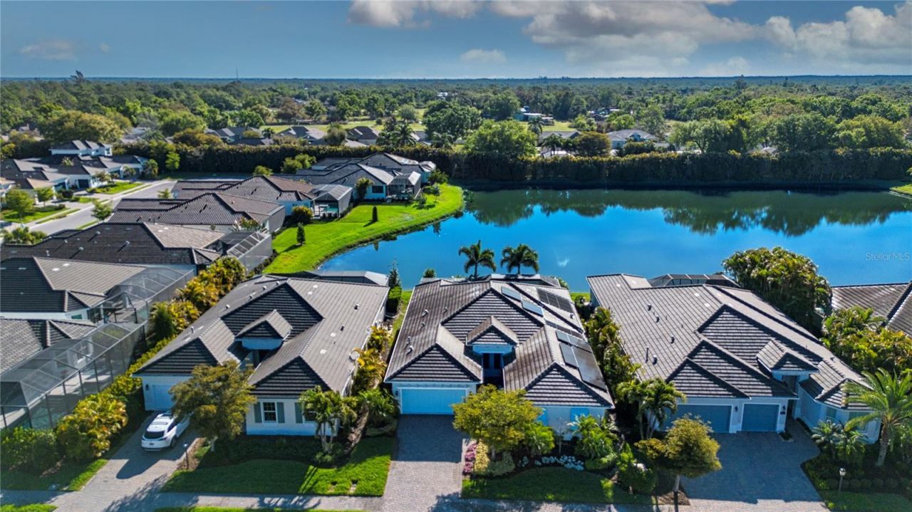 Luxury living and convenience are what make this impressive home special. Every upgrade available has been incorporated into this home; too many to list (the complete list is attached). However, walk into the foyer and appreciate the 10 foot ceilings, 8 doorways, Mohawk laminate floors and crown molding throughout. Plus the unique, separate wing of the house has a bedroom, full bath, den and an entrance to a one car attached garage with an epoxy floor and storage. The two other bedrooms are en-suite; all of the bedrooms have walk-in closets. The office, located in the wing, has glass paned frence doors which help work? in privacy. The gourmet kitchen has up-scale appliances, stainless range hood, six burner gas stove and grill, upgraded cabinets with an appliance lift shelf for the true gourmand, to keep the mixer off the counter but at the ready.From the kitchen, walk through the high impact, low E glass sliders, which, believe it or not, have motorized, remote controlled privacy/sun screens, to the outdoor kitchen and the salt water pool which is solar heated (with a back-up electric heat pump) and protected by Kevlar hurricane screens. In fact, the entire house is SOLAR: a whole house photoelectric system for the home, pool and two attic fans, and the total electric bill from FPL is only $25.00 monthly. AND, just in case, there is a 22K natural gas, whole house generator for peace of mind under any circumstance. Other features include the ship lap tent ceiling and chandelier in the Great Room; tray ceiling with tape lighting in the dining room; extended seating area and tray ceiling in the Primary Bedroom. The exterior of the home is illuminated by front and back professionally installed, low voltage ornamental lighting. The attached, two car garage on the opposite side of the home also houses the tankless water heater, Safe Rack steel overhead storage racks and an epoxy floor with access to the indoor laundry room containing GE Washer and Dryer on platform drawers and laundry tub. Sandhill Lake is a private, gated enclave comprised of 43 custom built Heritage Homes, located in Sarasota, Florida. At the heart of this community is a private Residents' Club, with heated pool and spa, clubhouse with comfortable seating and flat screen TV, catering kitchen, al fresco dining area, outdoor grill, fire pit and more. Landscaping and lawn care in the community is included, so owners enjoy time and freedom to explore the sun and surf that makes Sarasota the Arts Capital of Florida..Conveniently located in the Clark Road corridor, this community is within minutes of the Gulf Beaches of Siesta Key, fine dining, outstanding shopping at Sarasota's University Town Center mall, outdoor recreation, golf and tennis clubs and easy north-south access to points beyond on I-75.. Fine restaurants, shopping and excellent public schools are within close reach of Sandhill Lake.